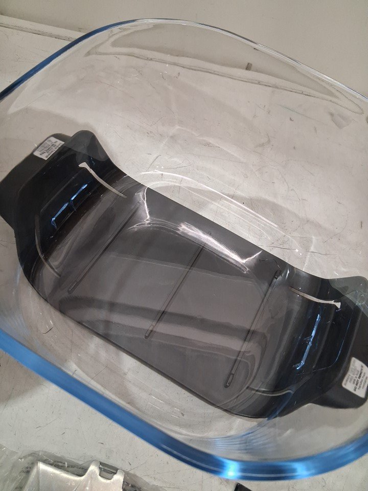 please note small glass cooking dish (including lid and tray) and insert plate are not in box, main cooking unit has some light grease residue from previous use