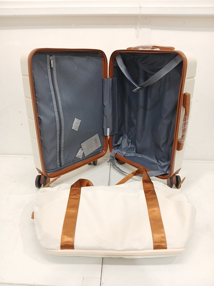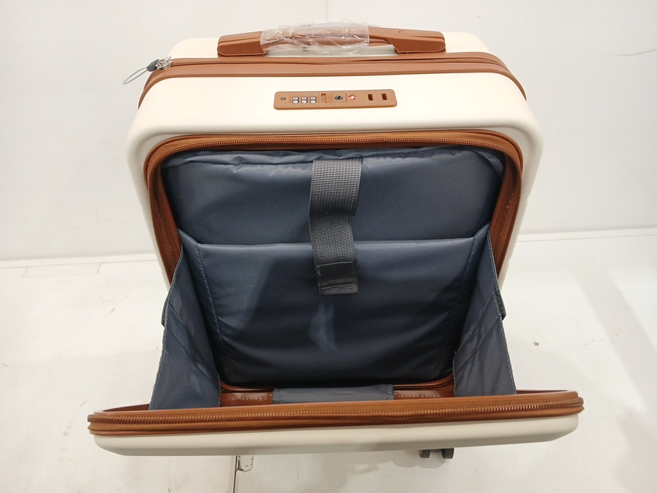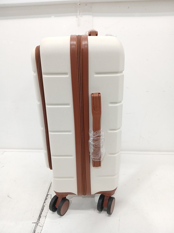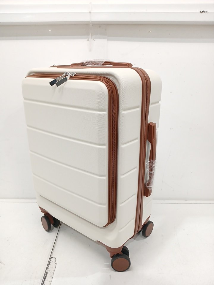3pc luggex hard shell carry on travel bag/luggage set with front pocket and spinner wheels - 22" - beige (model: h1f-zwt20-ttX)