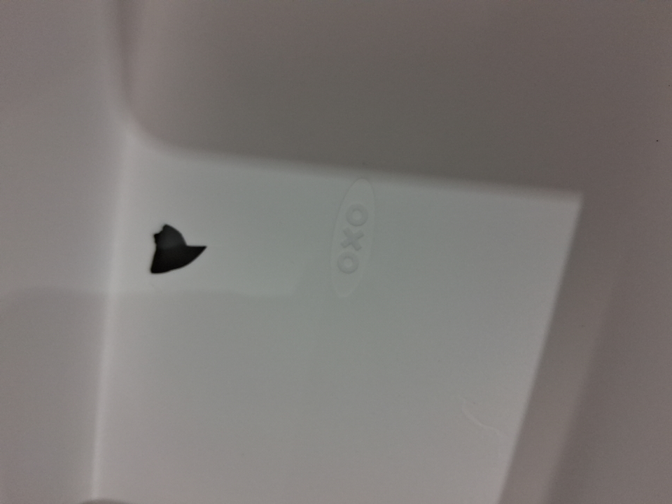 Please note that there is a small chip in the white container (see photos).