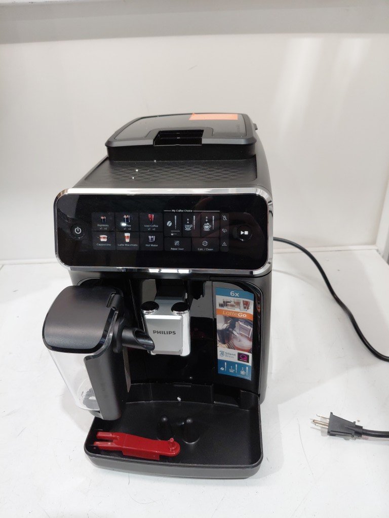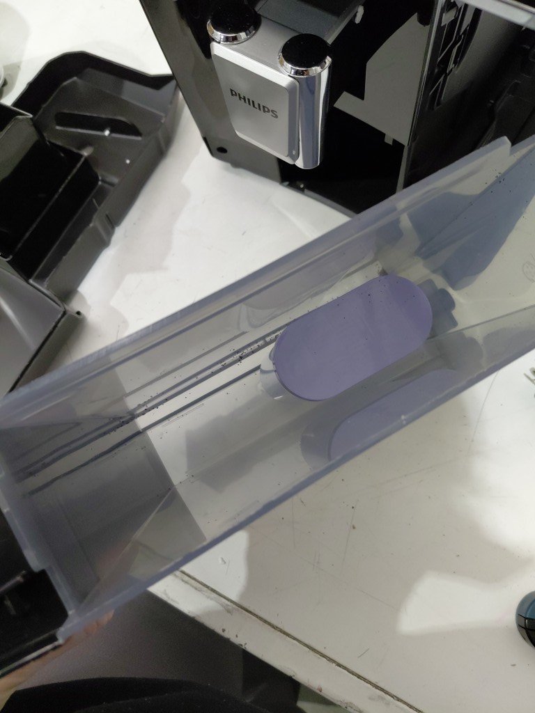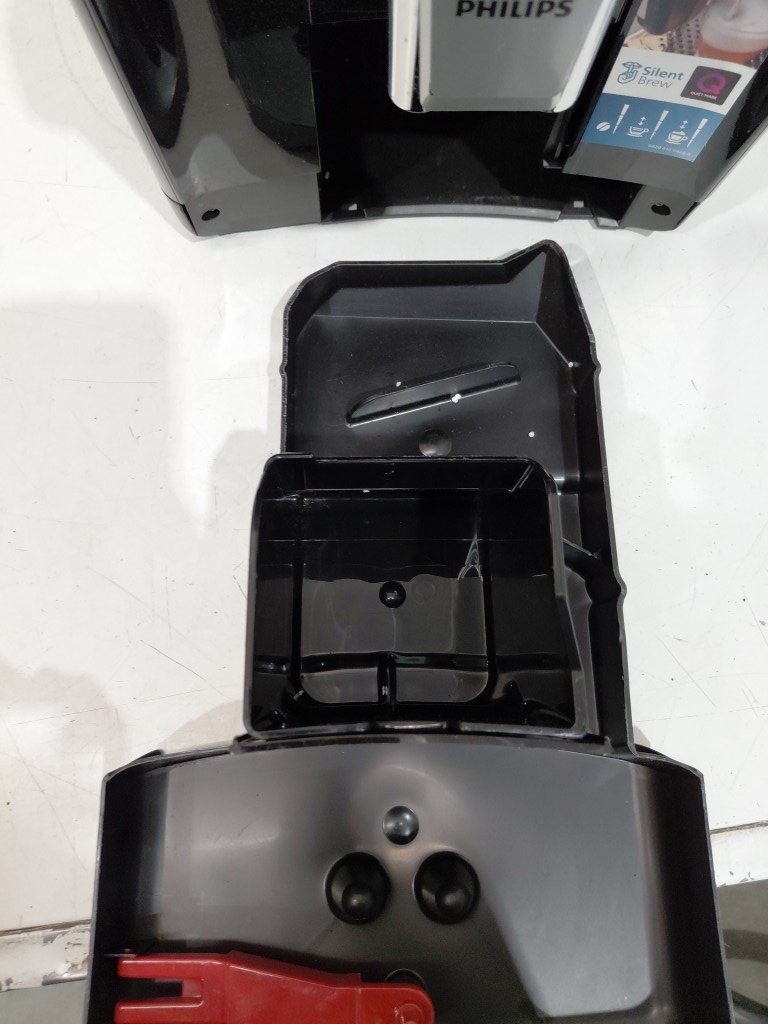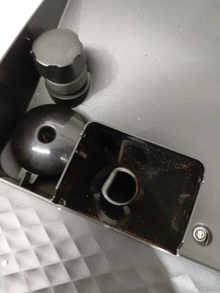 Missing small hopper lid, can be replaced or used without. Missing drip tray grate also can be replaced. Some light coffee/grind residue from previous use. Item may need to be cleaned before use (see photos) tested for power only