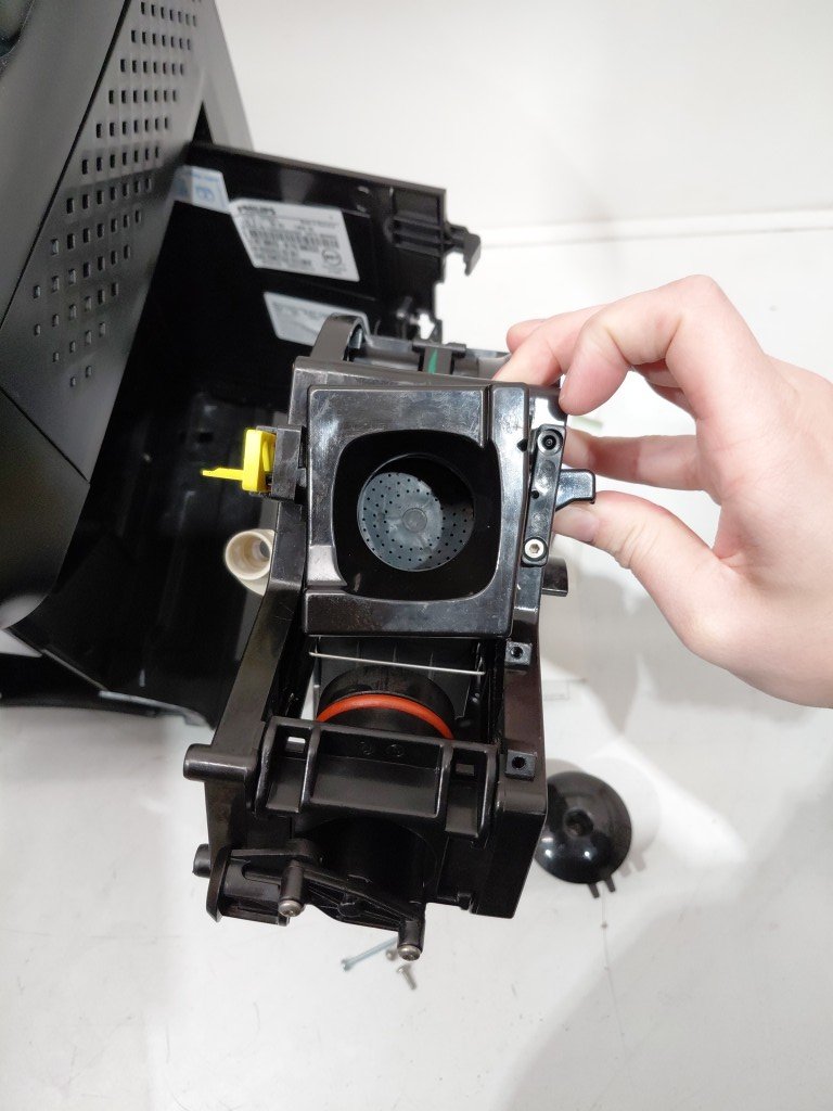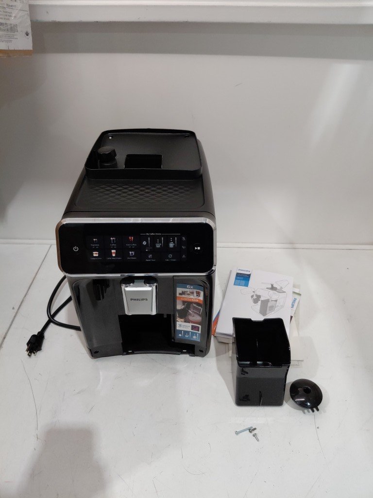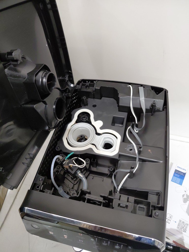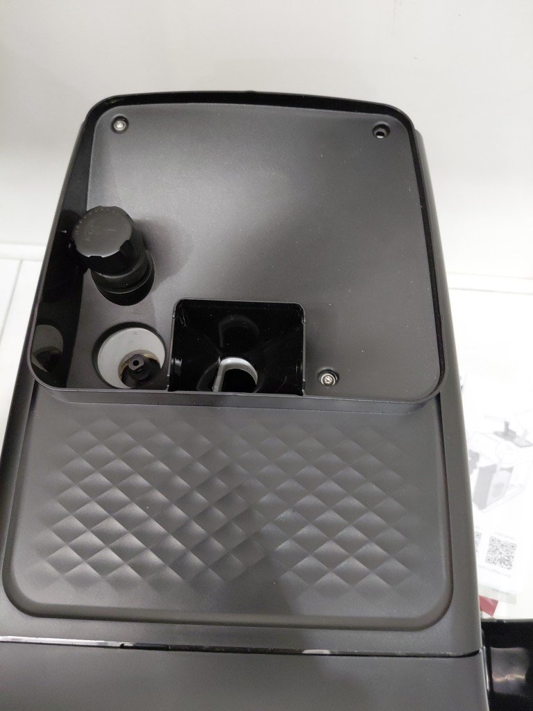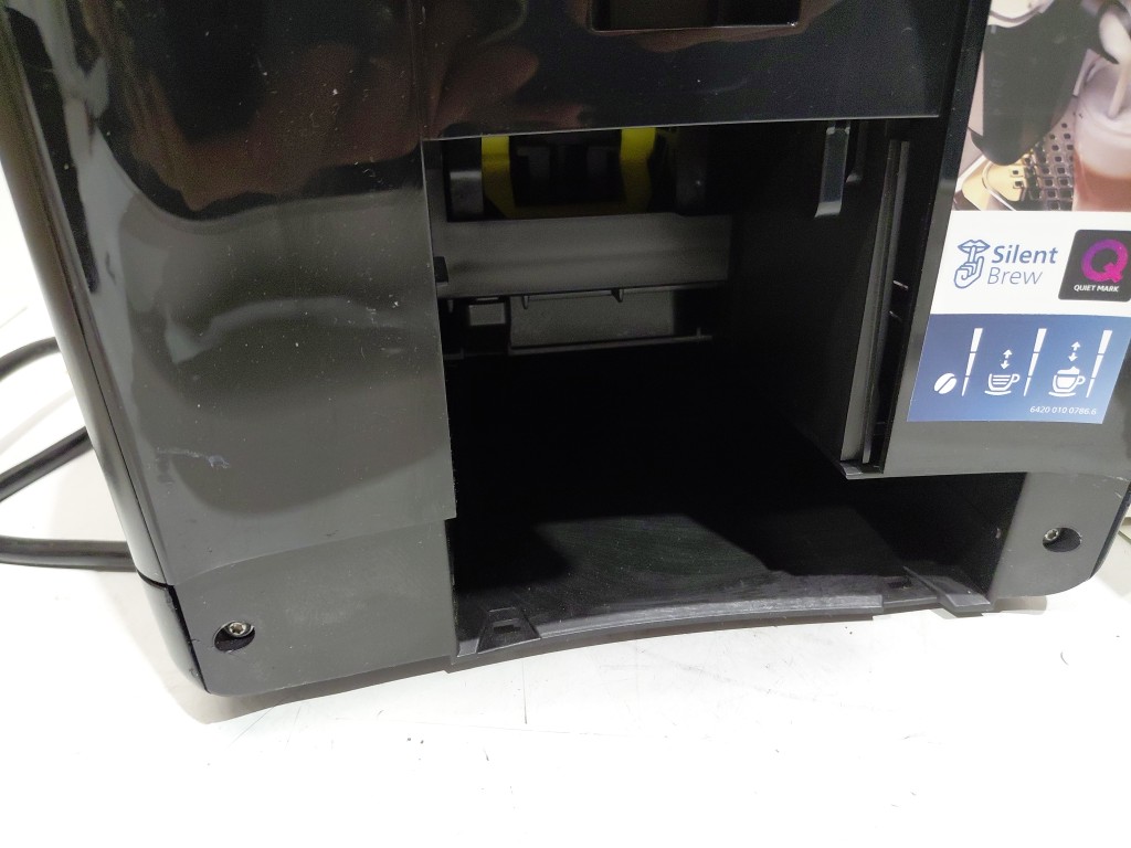 item's top is popped off & cannot screw back in as the plastic screw holes are broken off. missing drip tray, drip tray grate, small hopper lid. Hole in the top of unit, doesn't affect item. item would be good for parts (see photos)