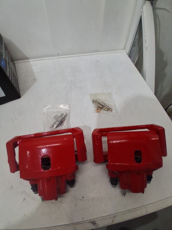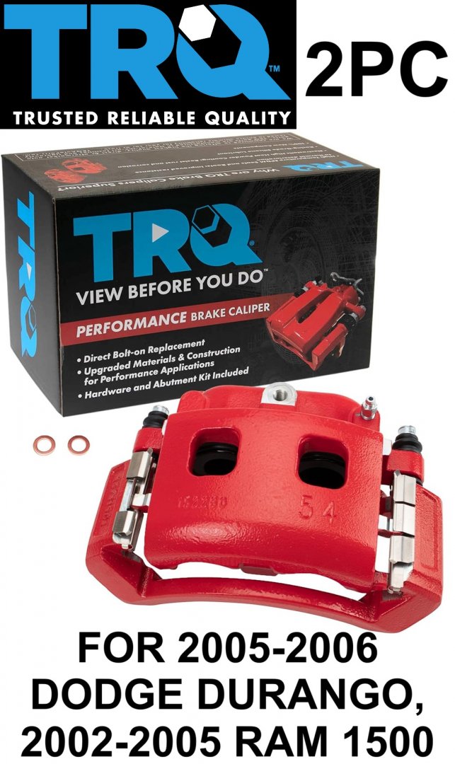 2PC TRQ Front Left & Right Brake Calipers for 2005 to 2006 Dodge Durango, 2002 to 2005 Ram 1500 - Red (Model: CLA40287/CLA40288)