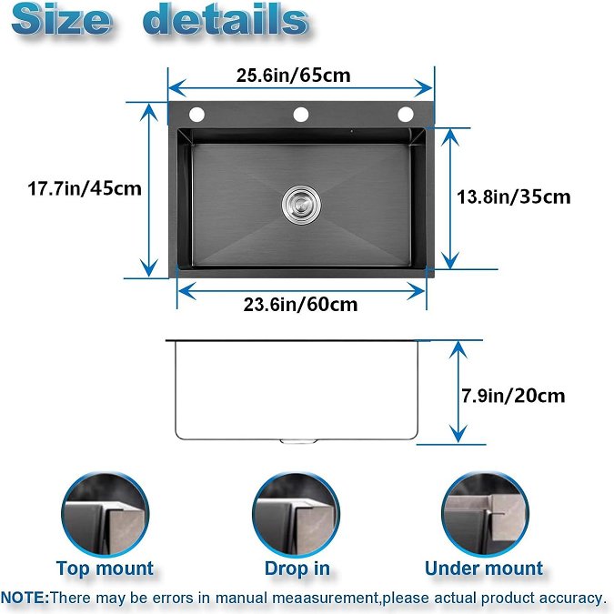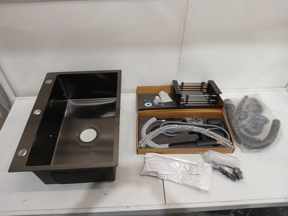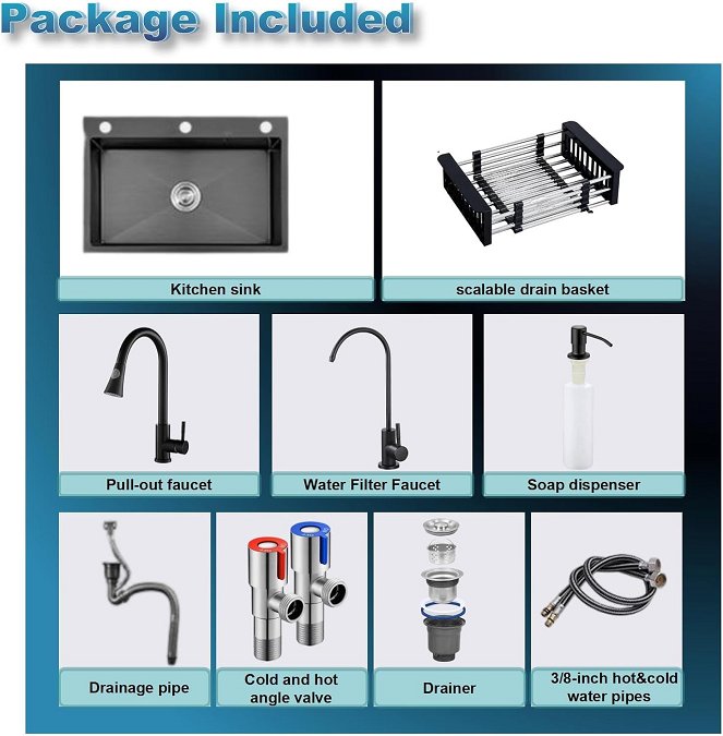 qmartue 3d nano stainless steel single bowl kitchen sink with pull-out faucet, soap dispenser & dropin/topmount - 17.7" x 25.6" x 7.9" - black ‎(model: 3 SINK BLACK)