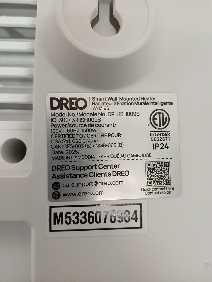 dreo Smart Wall-Mounted Space Heater - works with amazon alexa/google home - 120° Vertical Oscillation - 24H Timer - 1500W - white (model: DR-HSH009S)