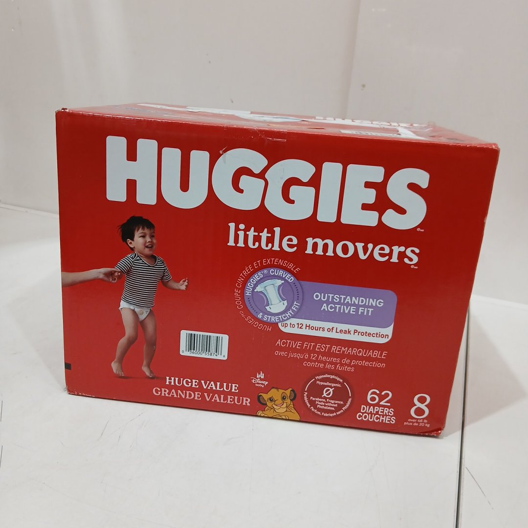 62PK Huggies Little Movers disposable Diapers - Size 8 (46lb+) - lion king (MODEL: 00036000558746)