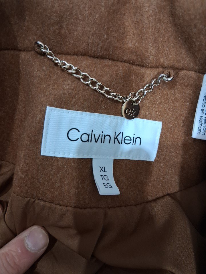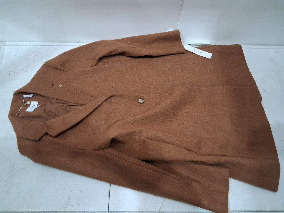 women's Calvin Klein Classic Faux Wool Overcoat Long Button Front Winter Jacket - extra large - Dark Camel