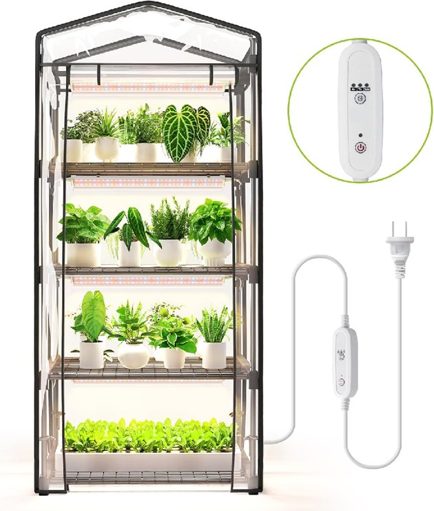 speeplant Indoor Greenhouse with Grow Light - 5 tier - 26" x 19" x 61" - clear/black (model:INWT80451265Dc)