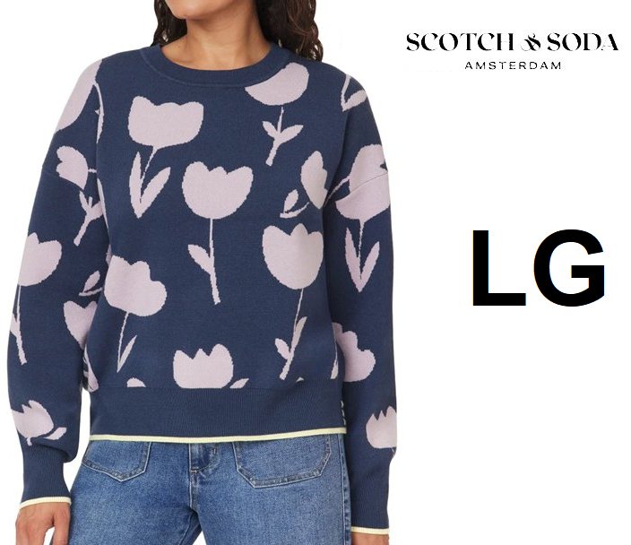 WOMENS SCOTCH AND SODA crewneck knit sweater - large - NAVY BLUE/LILAC (STYLE: 1945303)