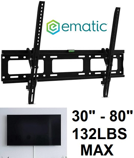 Ematic Tilting TV Wall Mount - for 30" - 80" TV Screen/132lbs - black - (model: EMW6201)