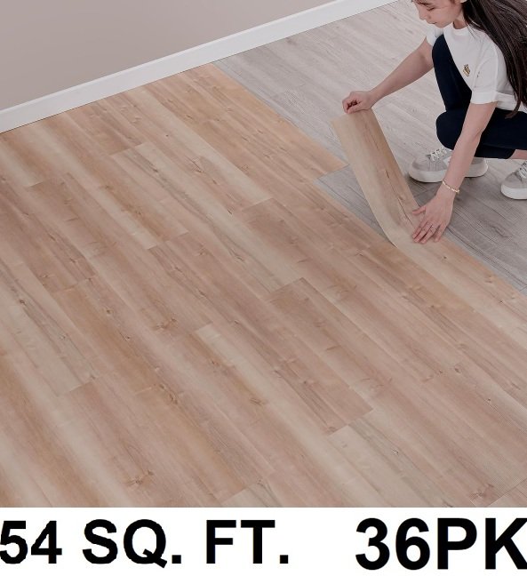 36PK hilarious peel and stick vinyl waterproof floor tiles - 6" x 36" (54 sq ft total) - light wood