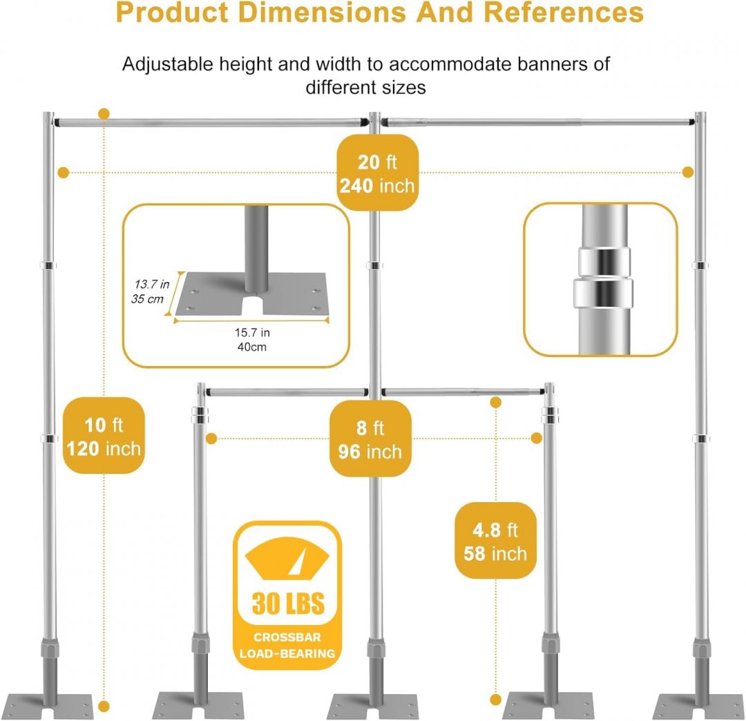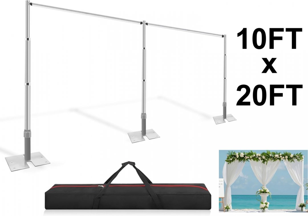 jiang&rong HEAVY DUTY ADJUSTABLE DOUBLE CROSSBAR BACKDROP STAND FOR photography/EVENTS - 10ft x 20ft - silver - (model: jr-pdbs3060)