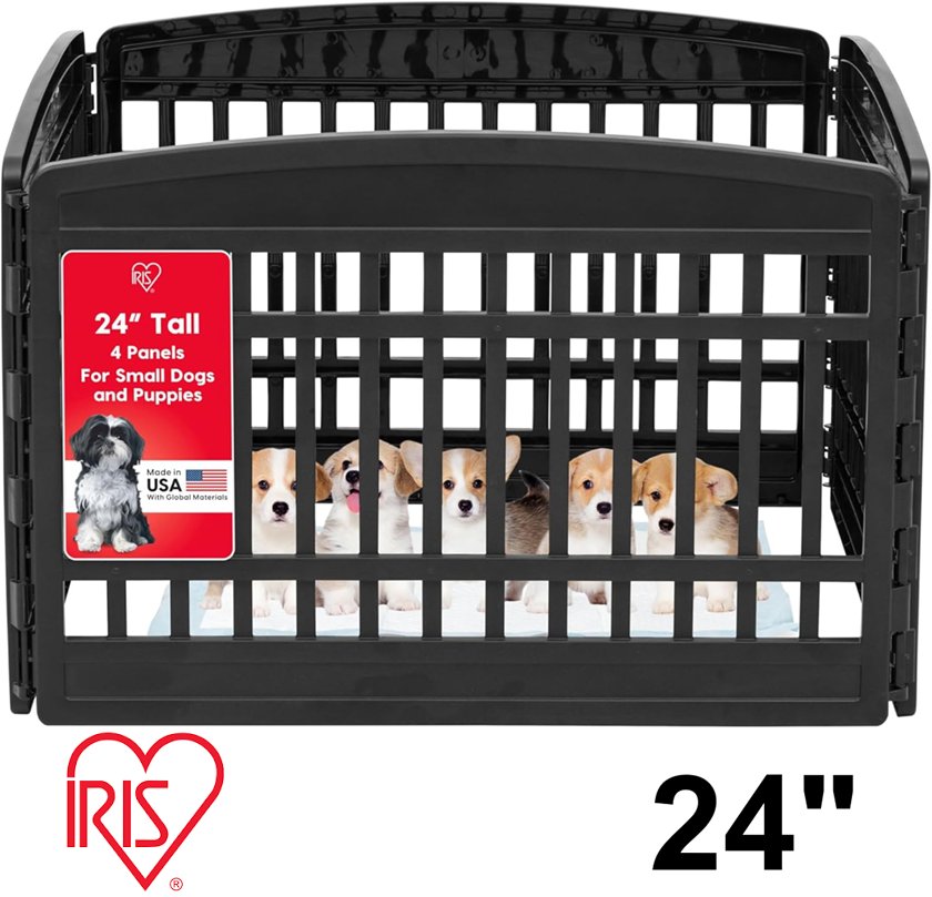 IRIS USA FOLDABLE 4-Panel Dog PLAYPen for small dogs and puppies - Black (Model:‎586699)