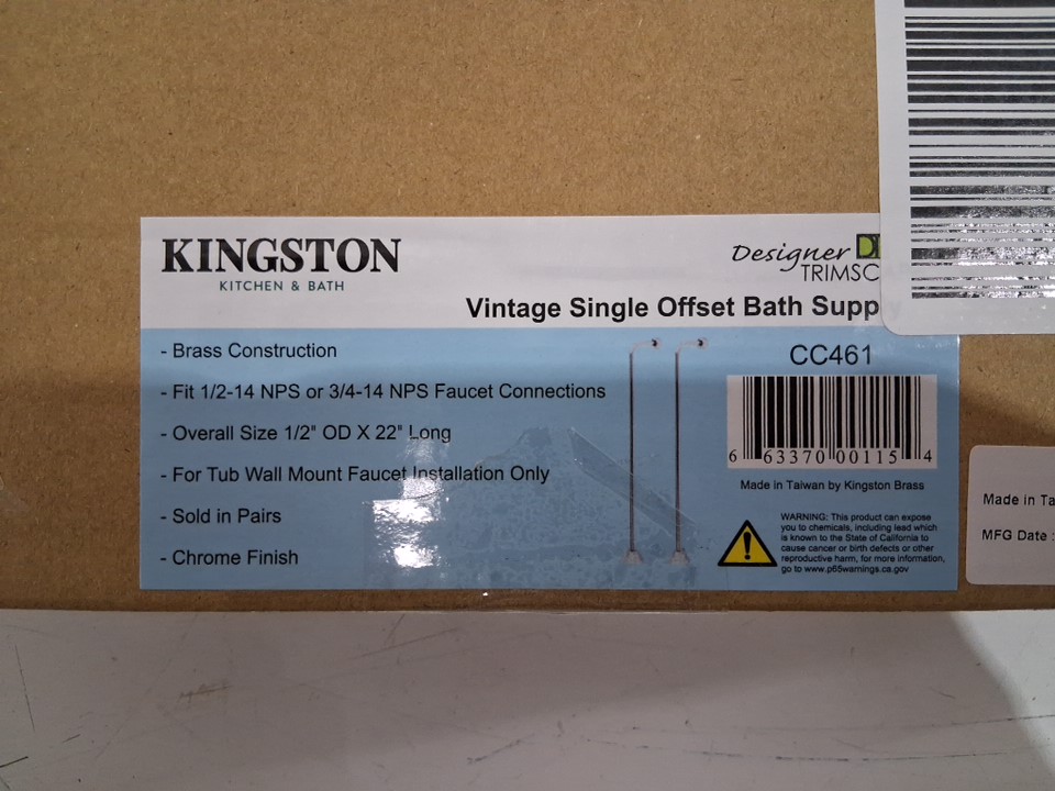 KINGSTON BRASS SINGLE OFFSET BATH SUPPLY LINES - 22" - POLISHED CHROME - (MODEL:CC461)