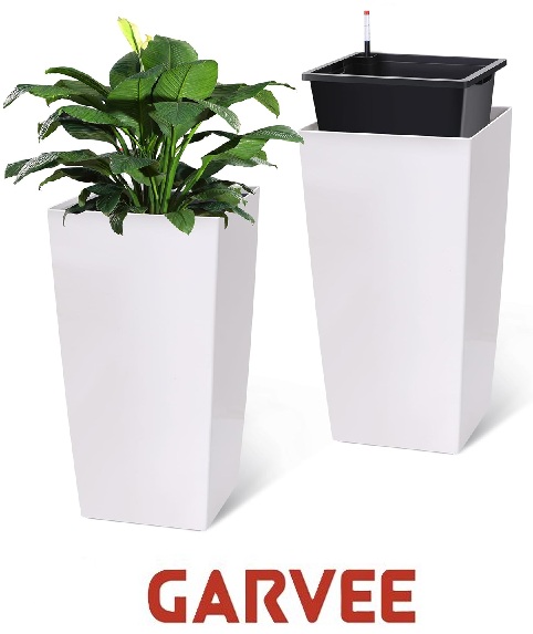 garvee self-watering planter with Drainage Holes and Water Level Monitor - white (model: A0NJ)