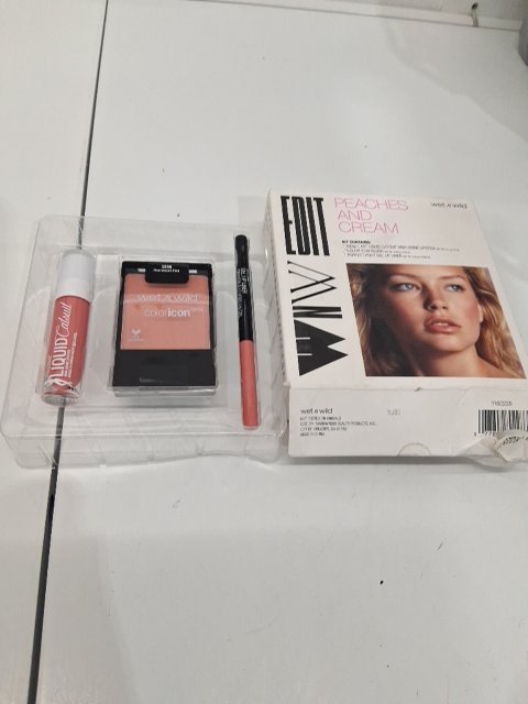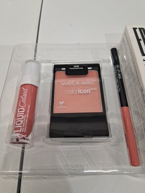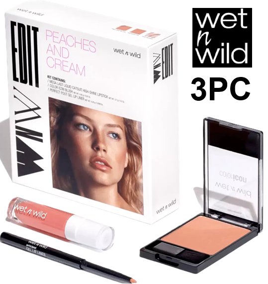 3PC wet n wild Edit Makeup Set MegaLast Liquid Catsuit Peach Style, Color Icon Blush Pearlescent Pink, Perfect Pout Gel Lip Liner Think Flamingo