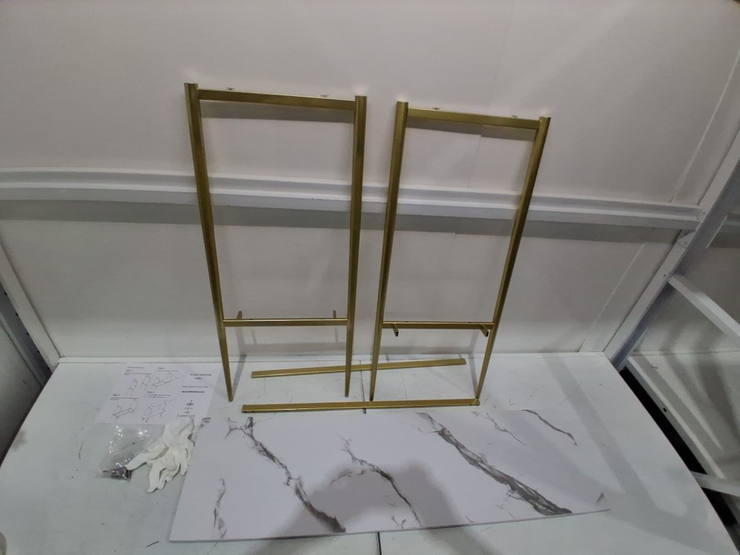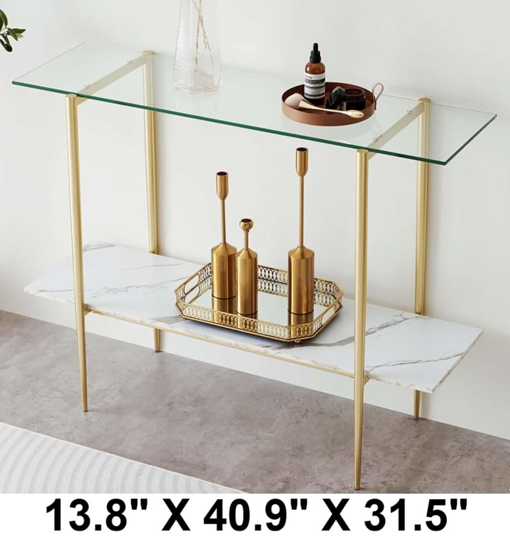 Lumfurn mid-century metal frame glass console table - 13.8"x40.9"x31.5" - marble,gold,glass