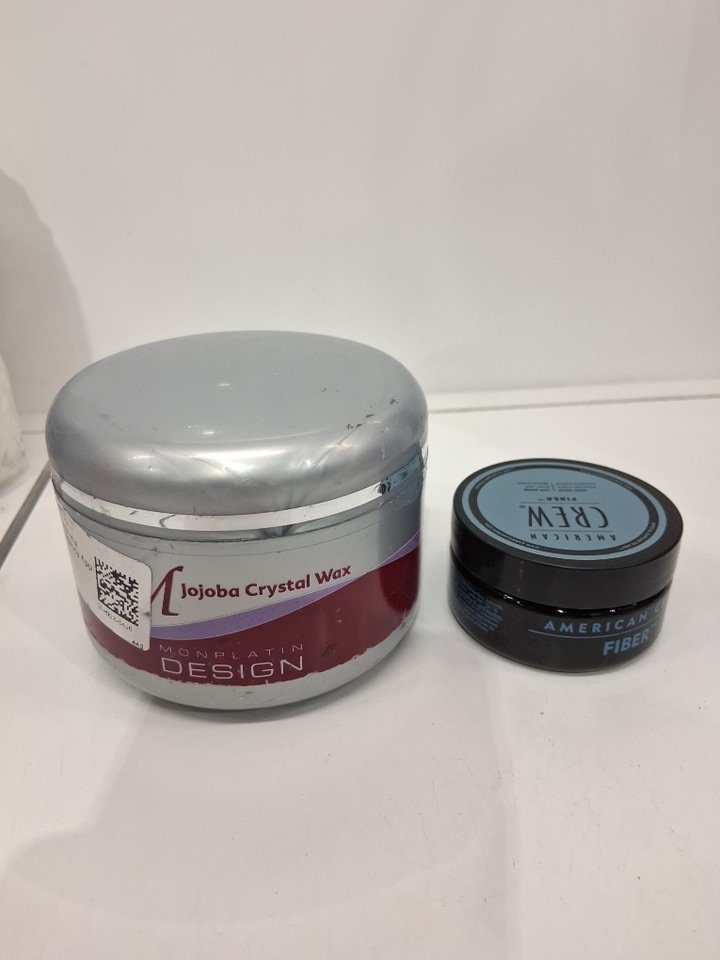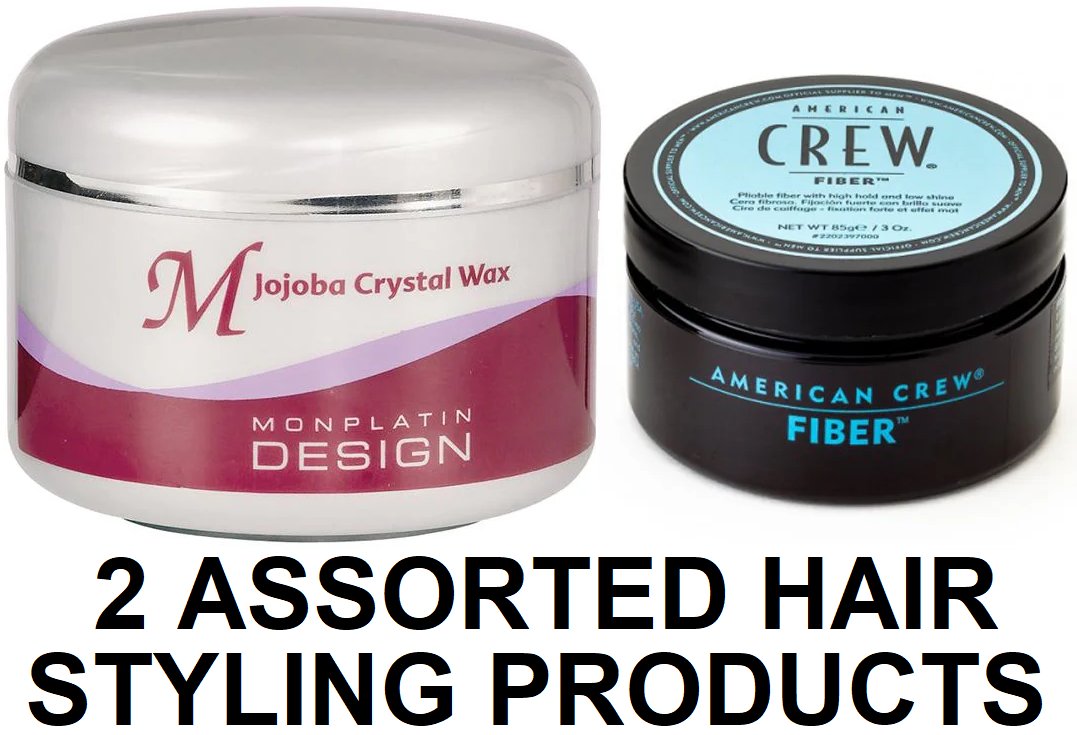 2 assorted hair styling products - assorted brands, sizes and types - monplatin design jojoba crystal wax / american crew fiber