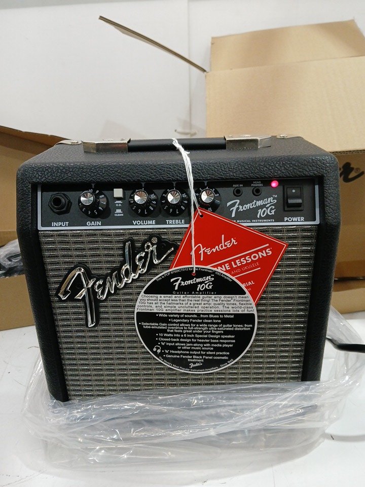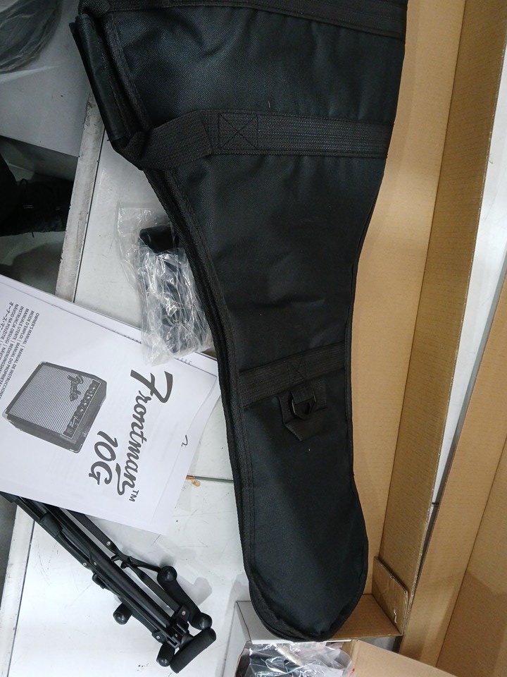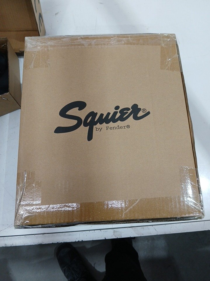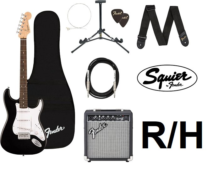 Fender Squier debut series stratocaster electric guitar kit, Amp, padded gig bag, lessons and accessories - Right Handed - 25.5" Scale - Black/WHITE/BROWN (Model: 0379800006)