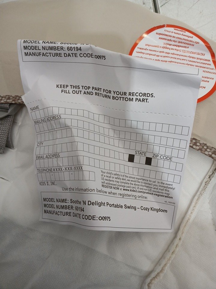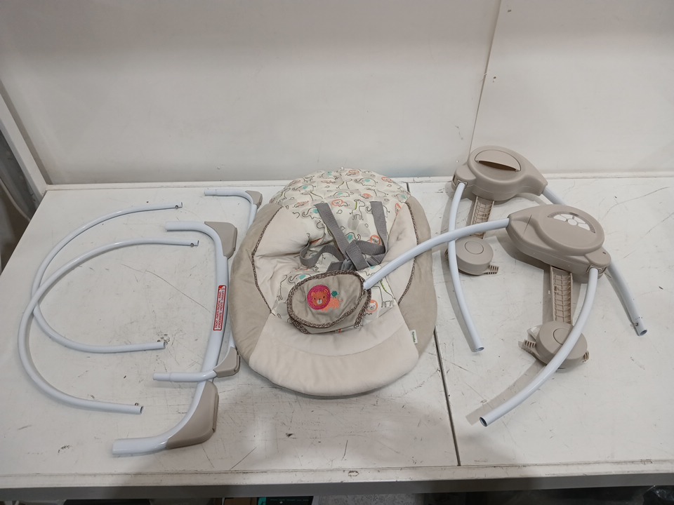 the swing has been tested for power. there are some pieces missing from product. (toy hanger)