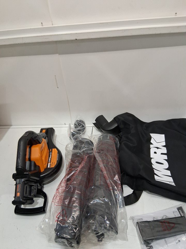 Worx 3-in-1 Cordless Leaf Blower, Vac, and Mulcher Set with Charger and 20V Batteries - 40V PowerShare - 4.0A - Black/Orange (Model: WG583)