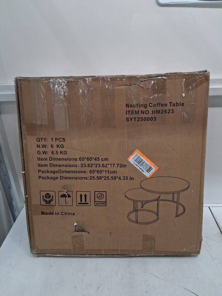 2PC Round nesting Coffee Table Set with Metal Frame - White