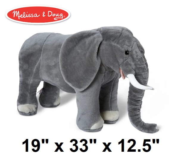Melissa and Doug Giant Stuffed Elephant plushie - 19" x 33" x 12.5" - Grey - (Model: 2185)