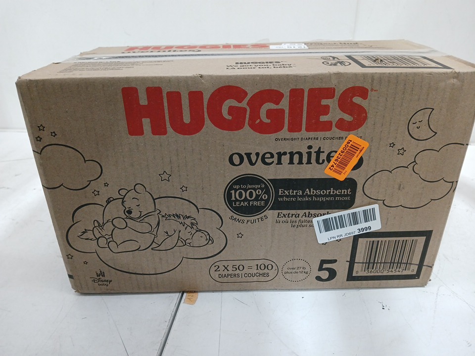 100PK HUGGIES OVERNITES NIGHT TIME BABY DIAPERS - SIZE 5 - WINNIE THE POOH - (model: 5454702)