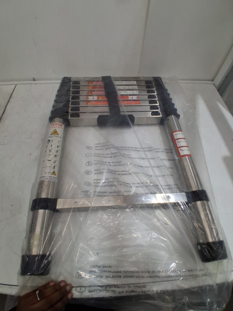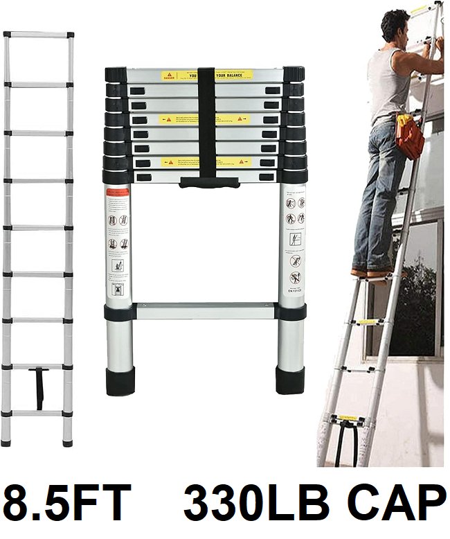 TELESCOPING LADDER WITH Non-Slip Feet - 330LBS max - 8.5FT - Stainless Steel /Black (MODEL: mf-stl260)