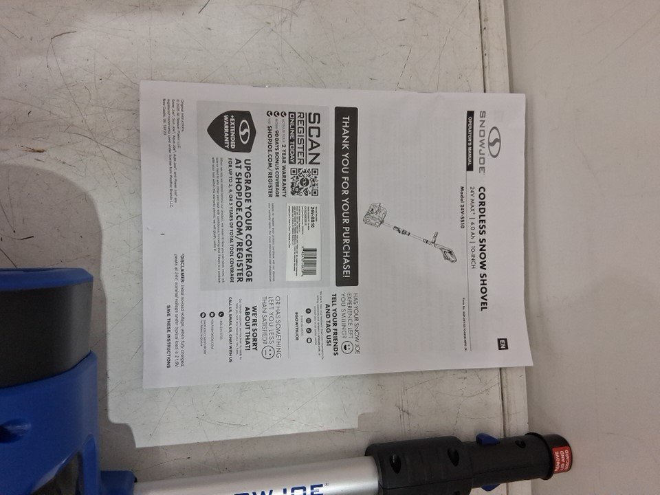 snowjoe ionmax cordless snow shovel with battery and charger- 10"W, 24v 4.0sh battery- blue (model: 24v-ss10)