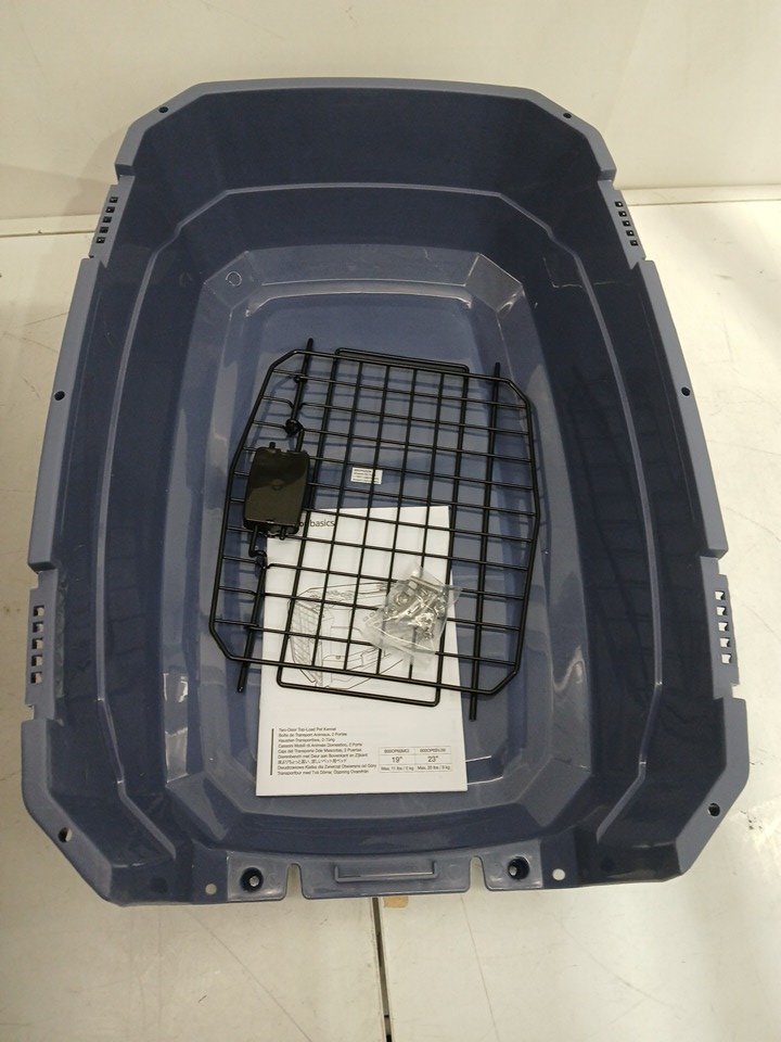 AMAZONBASICS TWO-DOOR TOP-LOAD HARD-SIDED PET TRAVEL KENNEL CARRIER CRATE FOR CATS OR DOGS - 23" x 15" x 13" - GREY/BLUE (MODEL: ‎6009-M-APL)