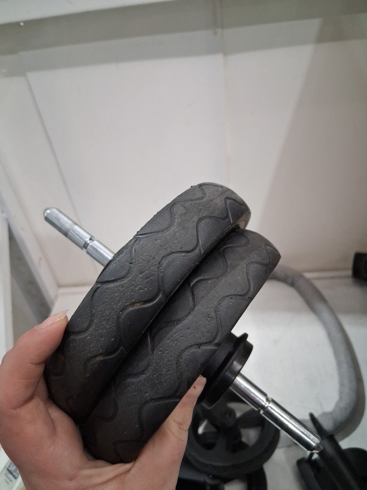 wheels and wheel connection wells have small amount of wear from previous light use