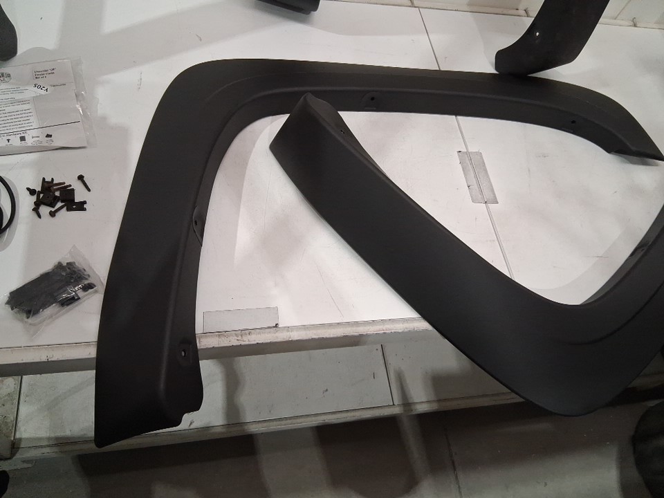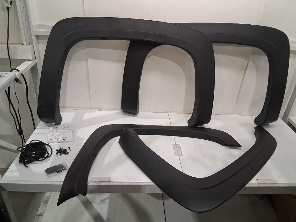 There is some dirt/scratches on one of the four fender flares and some of the hardware indicating previous installation/use, but the other three appear new (see photos)