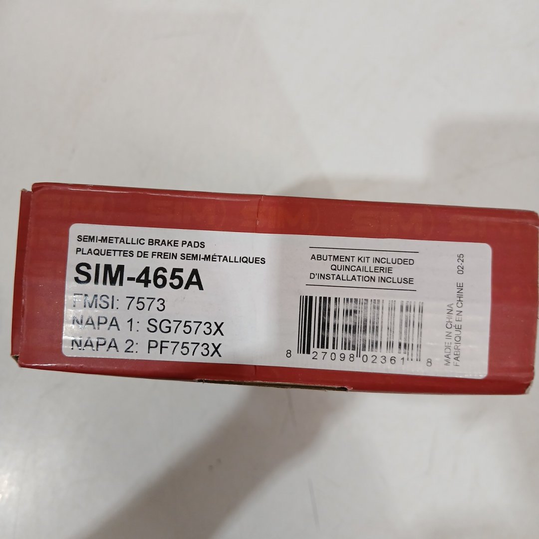 4PC SIM SEMI-METALLIC MOLDED BRAKE PADS FOR SELECT VEHICLES - (MODEL: SIM-465A)