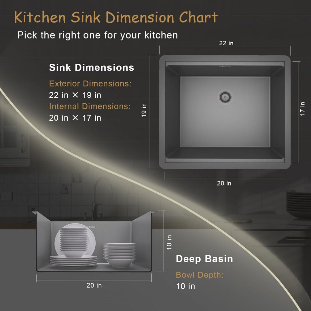 interosa grain embossed stainless steel undermount kitchen sink - 22" x 19" x 10" - silver grey