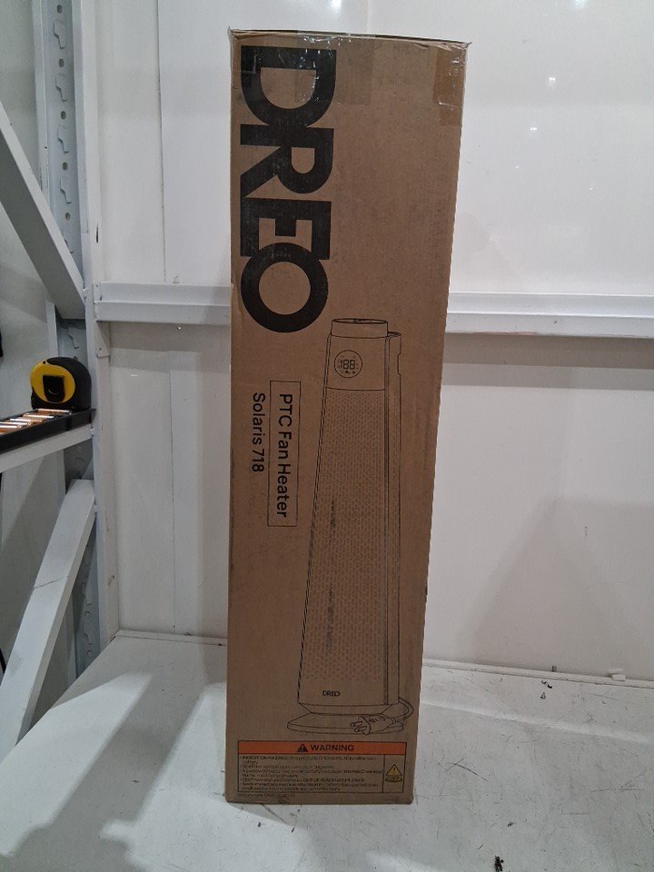 Dreo Solaris 718 PTC Tower Heater - 1500W - 5 Heat modes - 3 fan modes - 41-95˚F thermostat with 1˚F Increments - 30" - Black (Model: DR-HSH008)