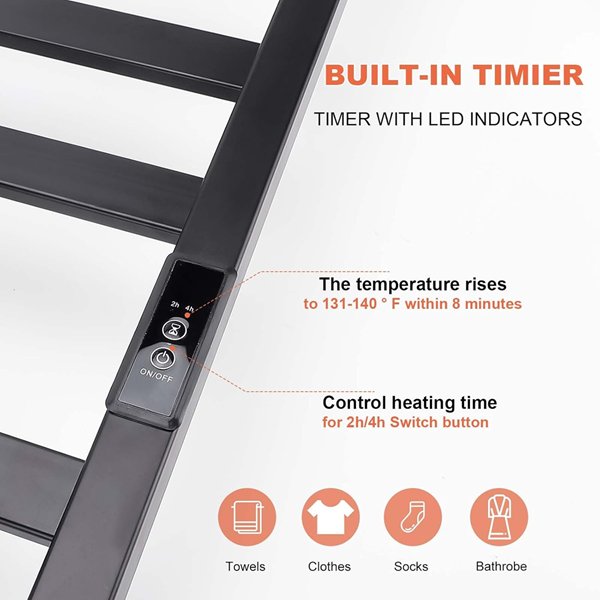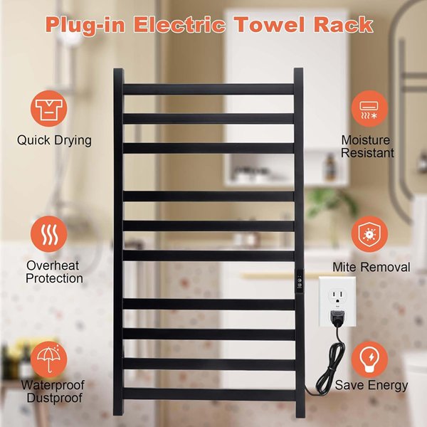 Nopwer 10 bar electric heated towel warmer/dryer with timer - 36" x 19" - MATTE black
