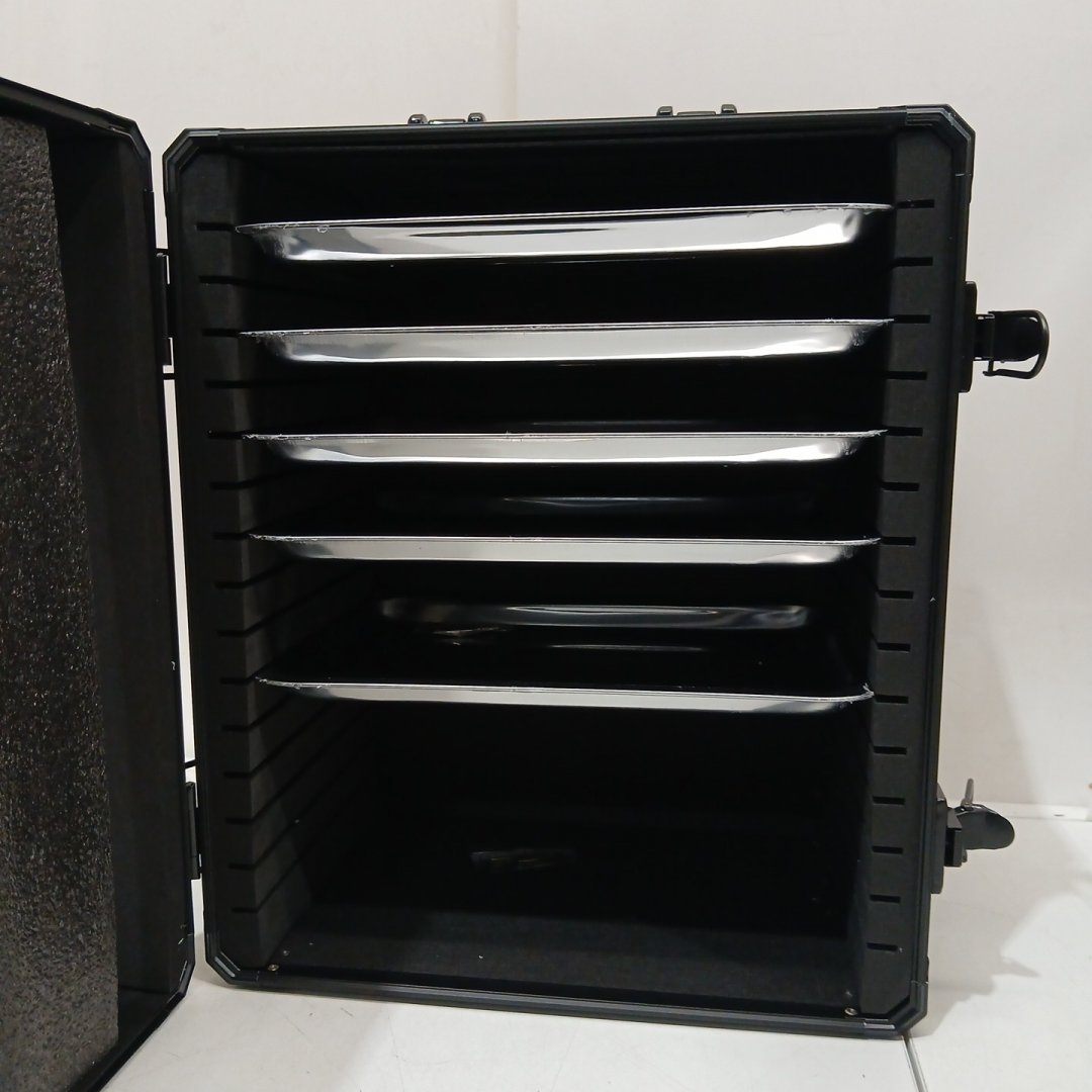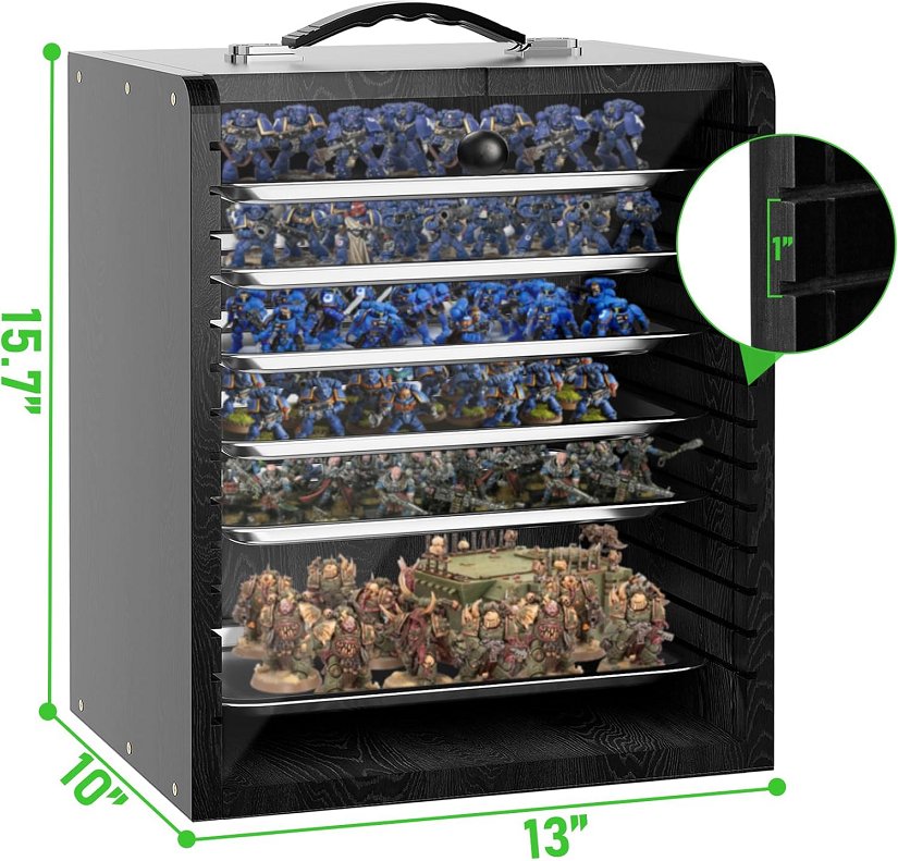 AKOZLIN Miniatures Storage Case with Magnetic Shelves, lock & keys - medium, 13.5" x 10" x 15.7" - black