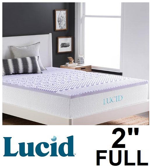 LUCID 5 Zone Lavender Memory Foam Mattress Topper - 2" - FULL - lavender purple