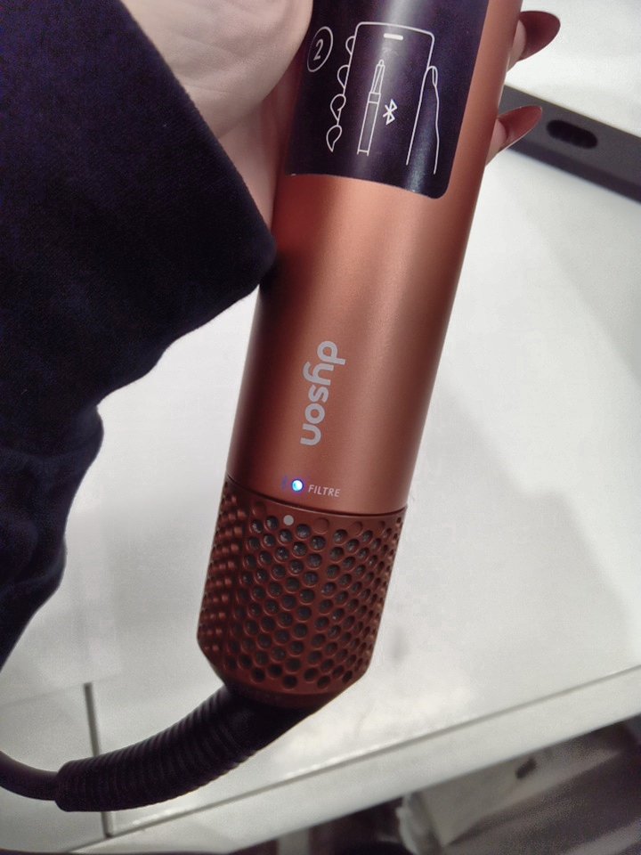 dyson has been previously used, debris in filter, and some hair on brush attachment