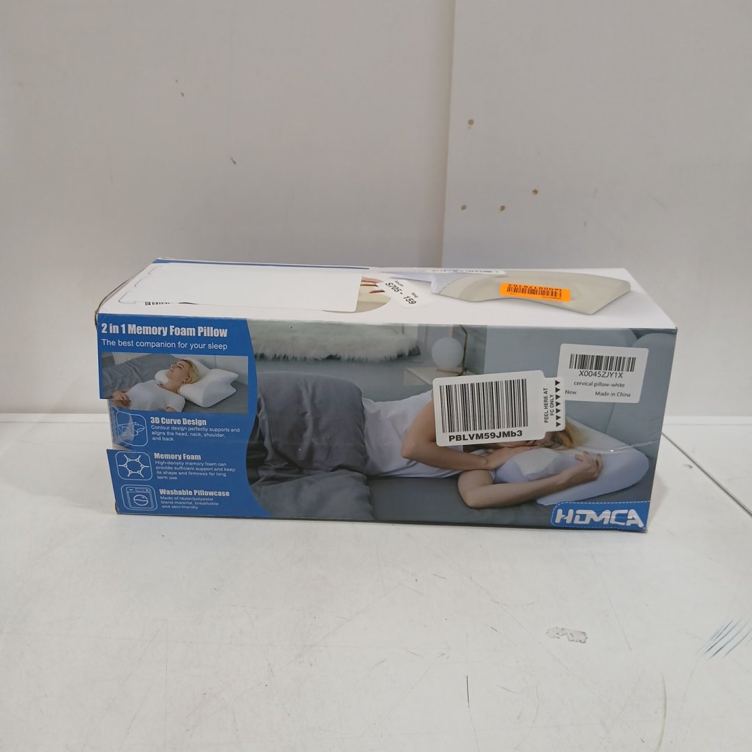 HOMCA 2-IN-1 3D CURVE Ergonomic Memory Foam Pillow for Side, Back & Stomach Sleepers - 15.7" x 23.6" - White/Grey (model: PL02)