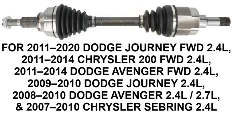 Kugel Front Left CV Axle Shaft for 2011–2020 Dodge Journey FWD 2.4L, 2011–2014 Chrysler 200 FWD 2.4L, 2011–2014 Dodge Avenger FWD 2.4L, 2009–2010 Dodge Journey 2.4L, 2008–2010 Dodge Avenger 2.4L / 2.7L, 2007–2010 Chrysler Sebring 2.4L (Model: NCV-CH12101)