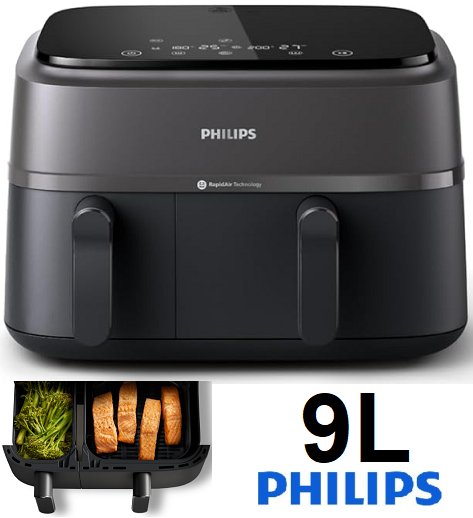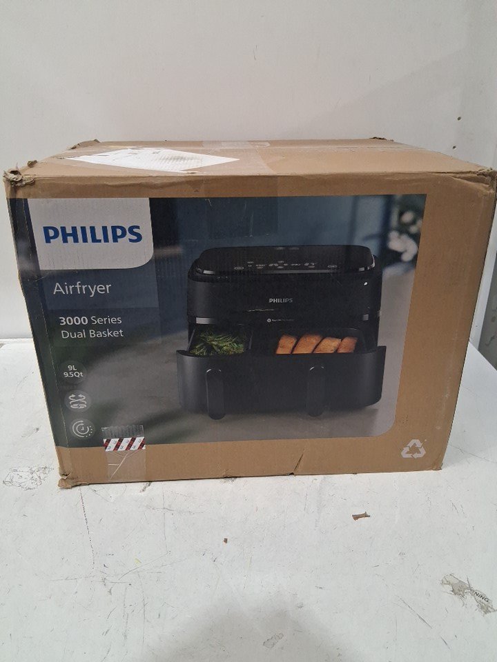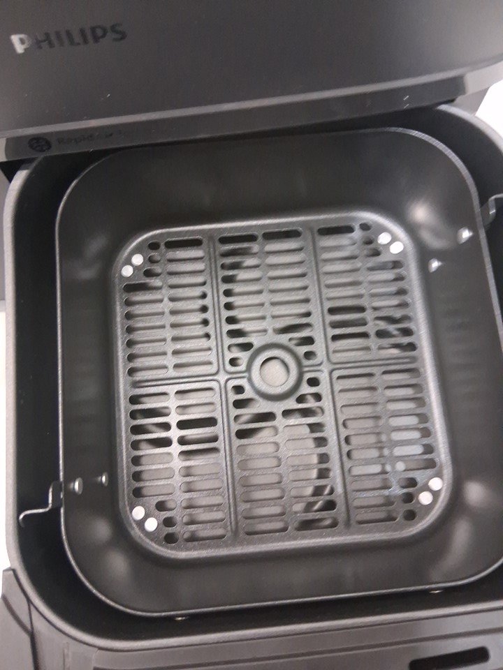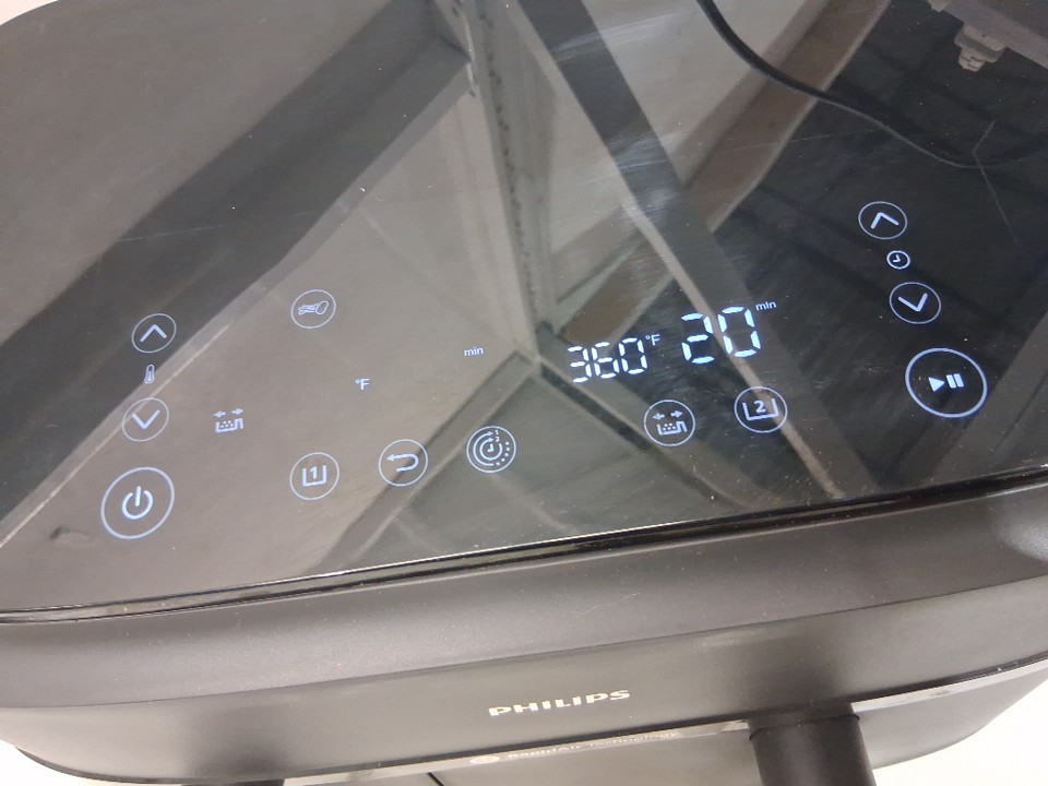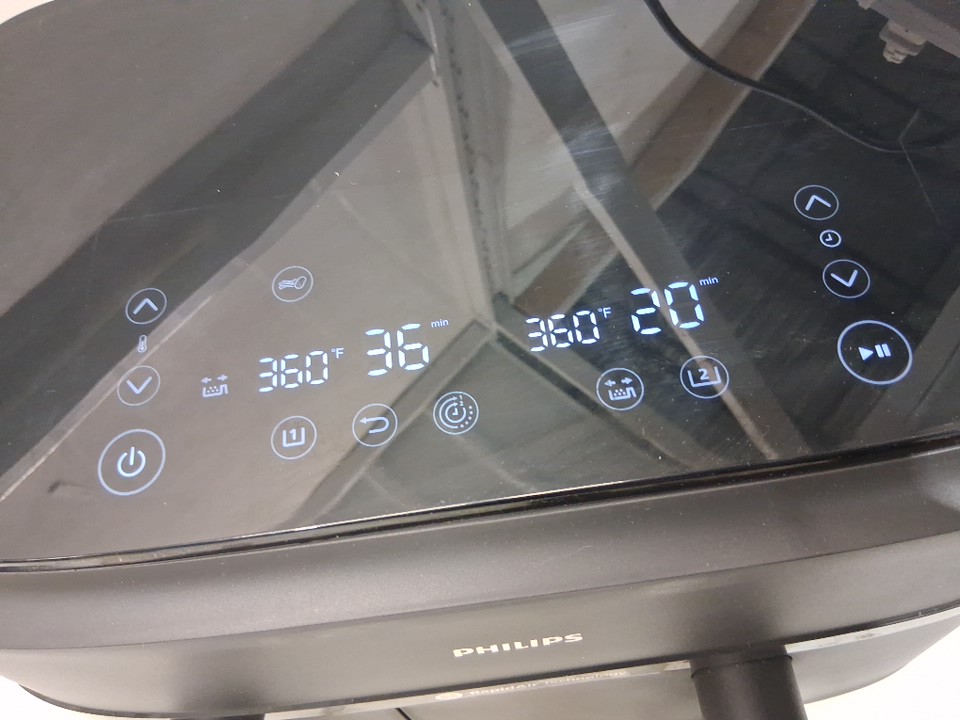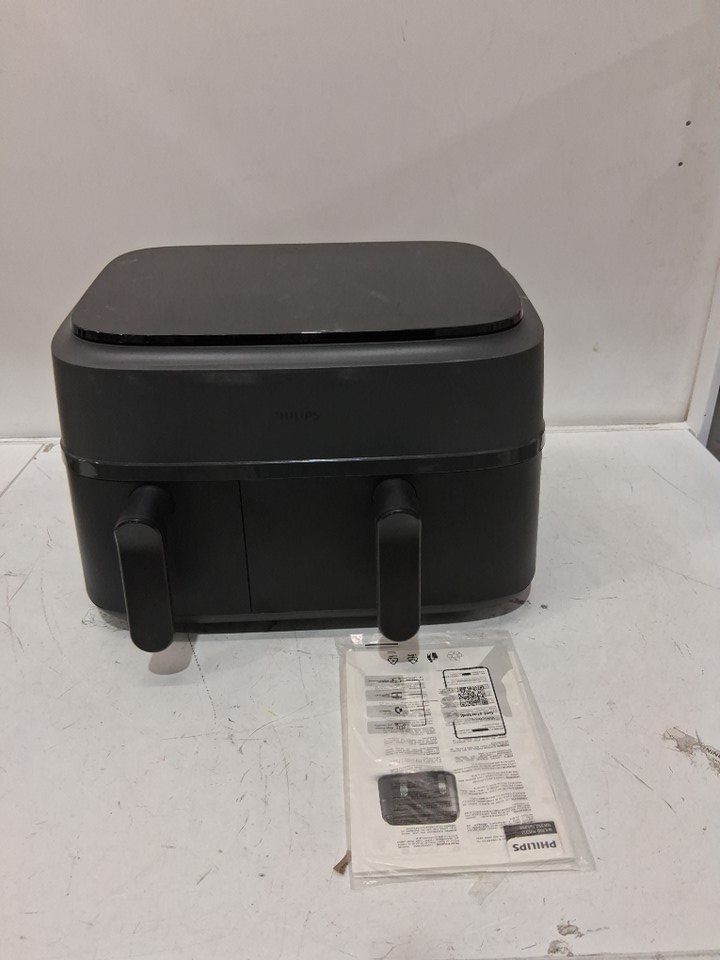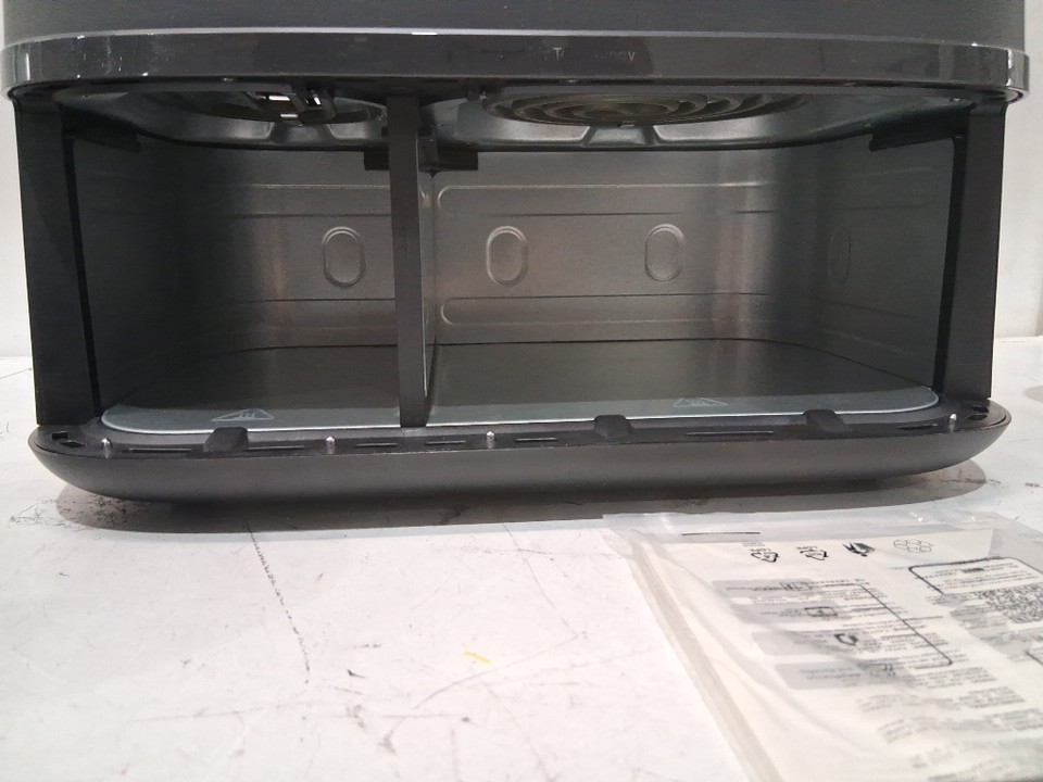 +Tested for power. +Tested for heat. Rear cord holder is broken. Large basket appears to not be producing heat. Scuffs/scratches present.