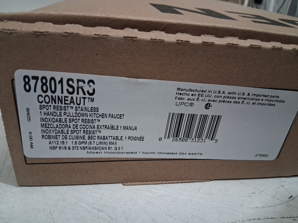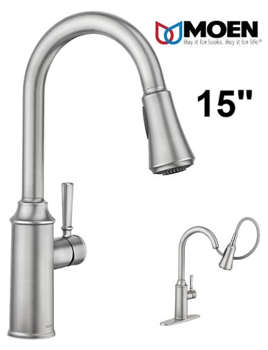 MOEN Conneaut Single Handle Pull-Down Sprayer Kitchen Faucet with Power Clean and Reflex in Spot Resist Stainless - 15" - silver (MODEL: 87801srs)