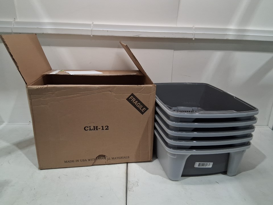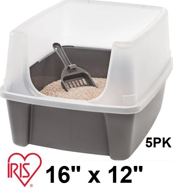 5pk IRIS Open Top Cat Litter Box Kit with Shield - 16" x 12" - grey/CLEAR - (MODEL: CLH-12)