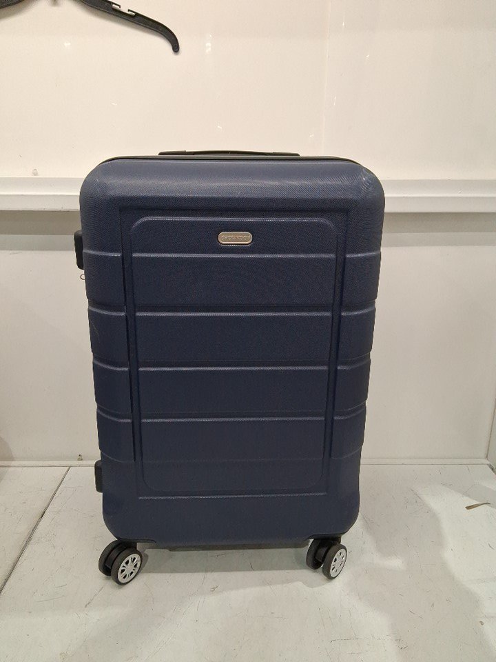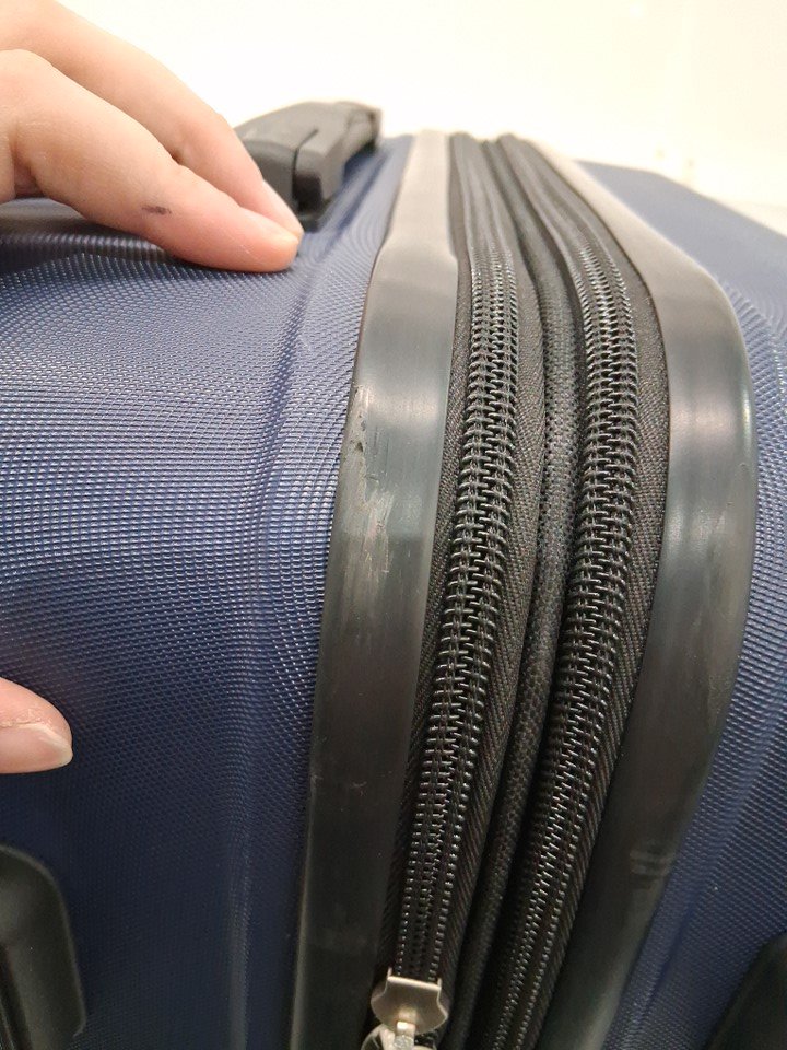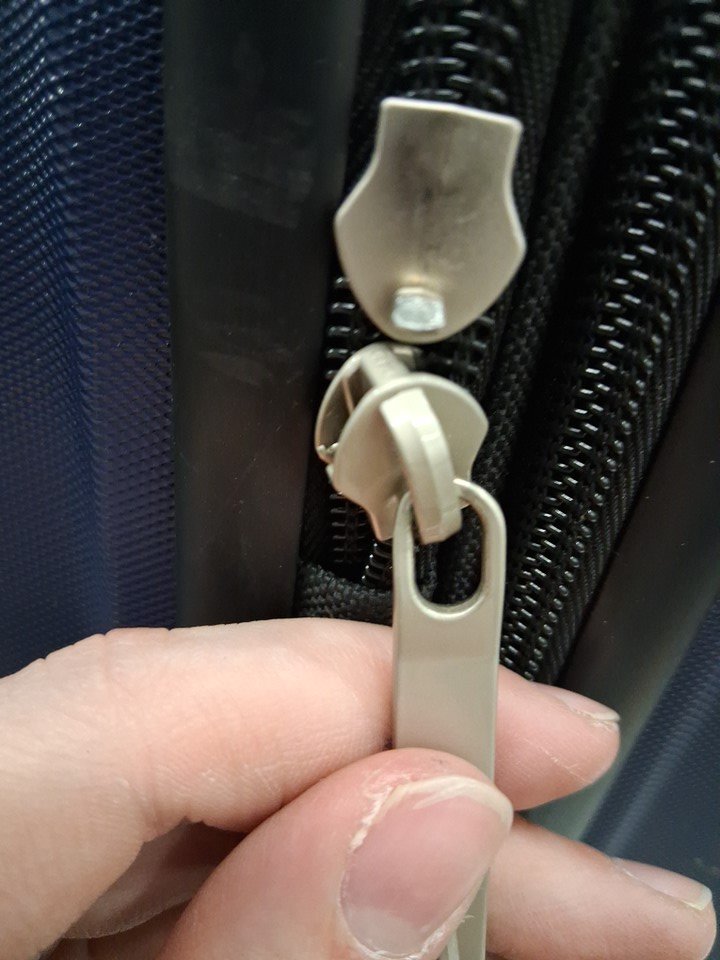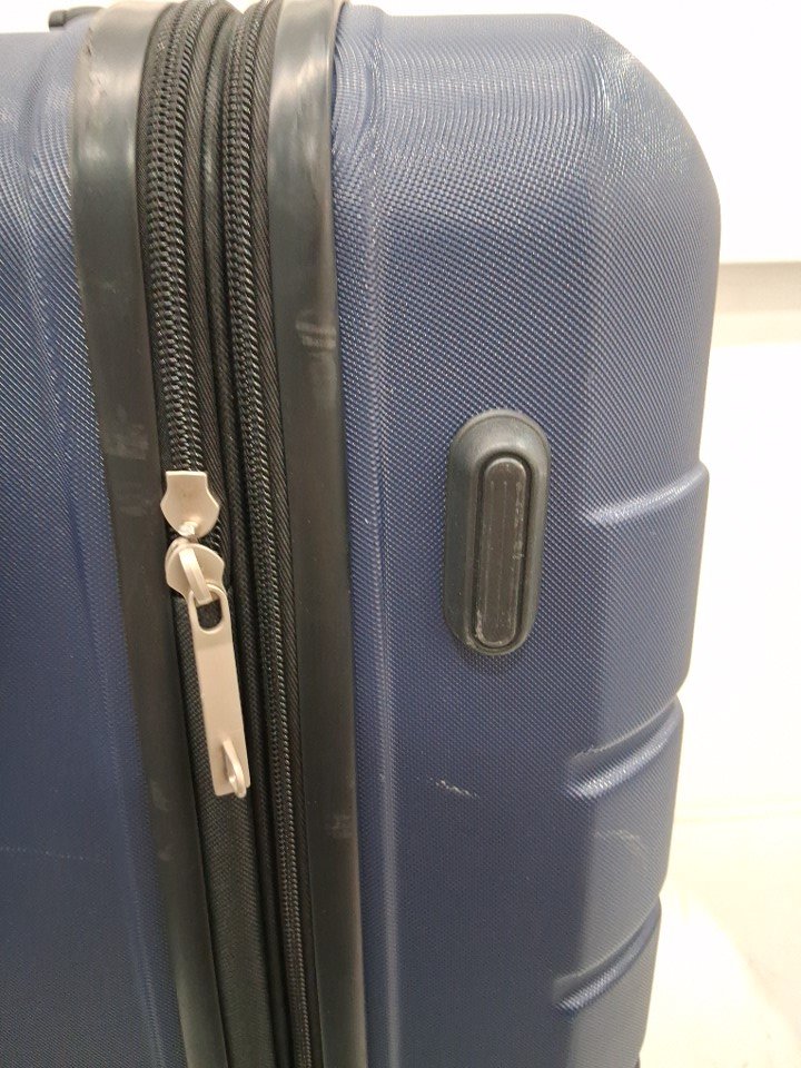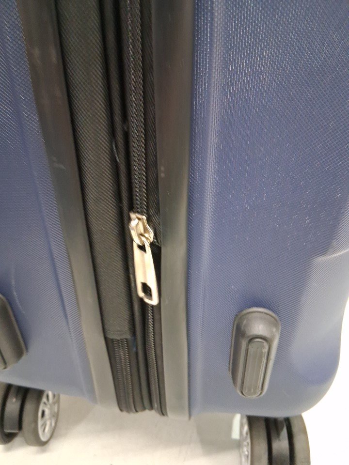 Both main zippers are broken; one still functions the other has come off the track. Product also has some light markings throughout indicating previous use. The default code has been changed but new one has been left in an envelope.
