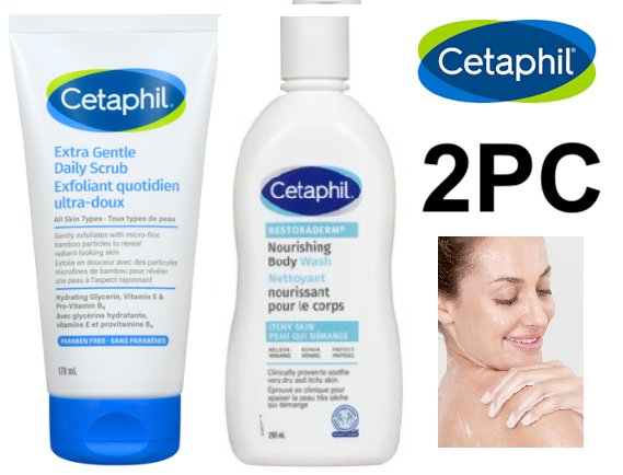 2PC CETAPHIL extra gentle daily scrub & nourishing body wash - 178ml/ 295ml