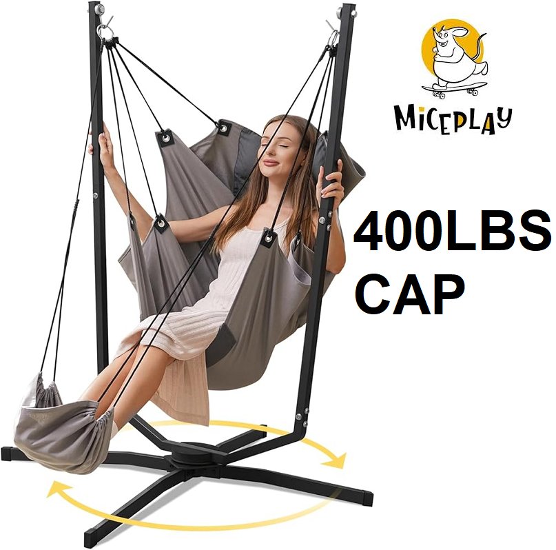 miceplay 360 degree swivel hammock chair - 400lbs capacity - 39" x 39" x 59" - black (model: SM100102)