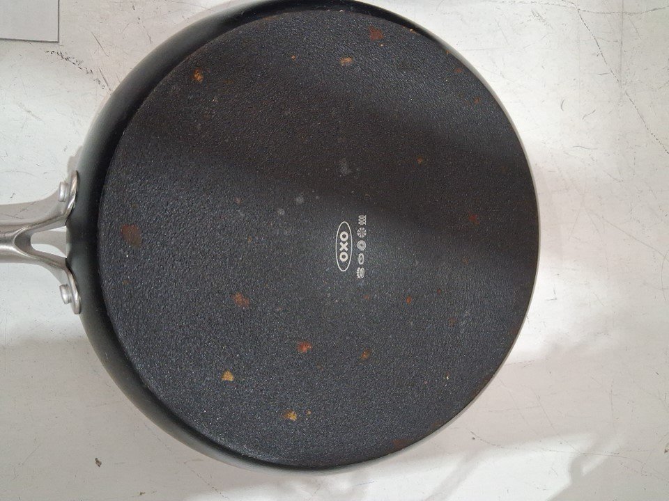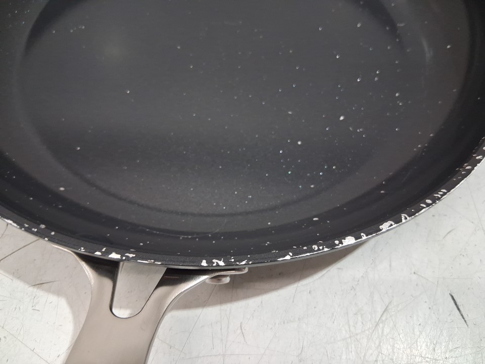 please note there are signs of light use on the backside of the pans as well as light chips on the front side