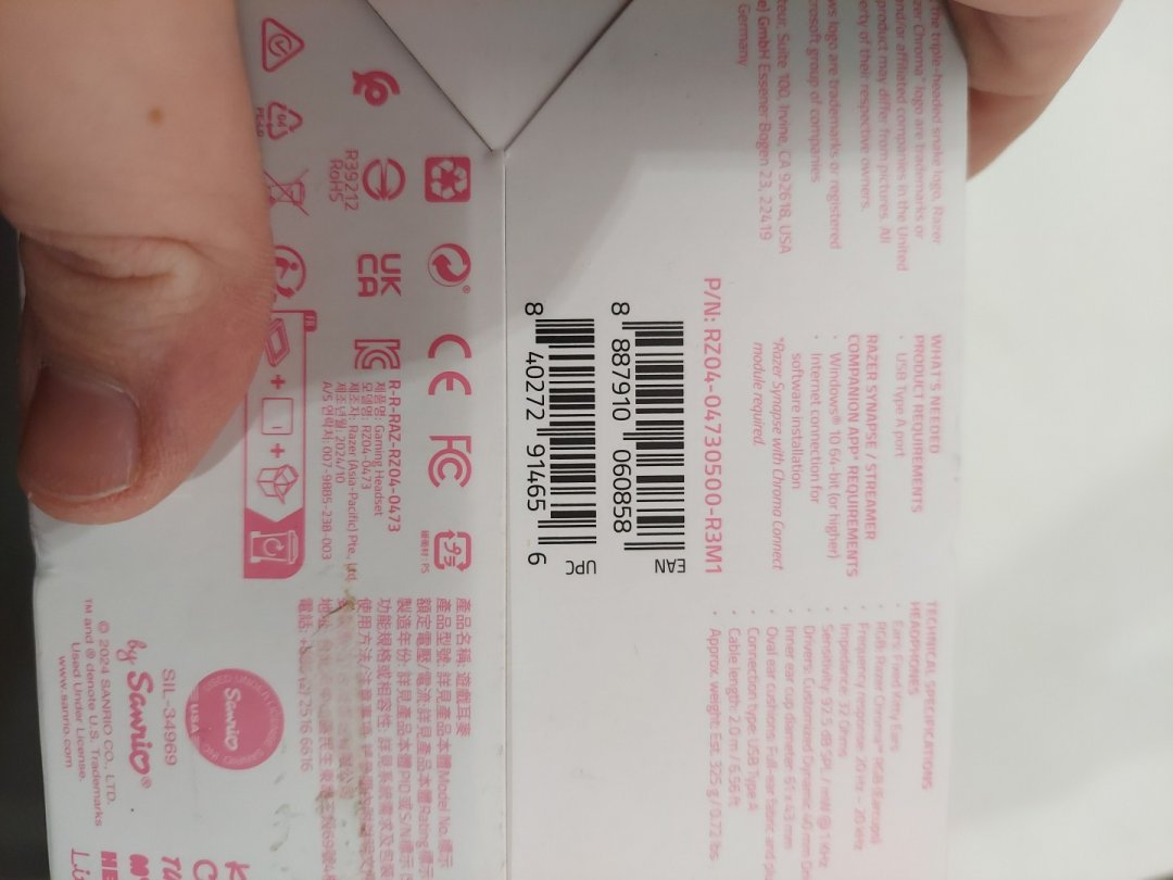 Razer x Hello Kitty and Friends Kraken Kitty V2 USB-A Wired Gaming Headset with Chroma RGB Lighting - White/Pink (Model: RZ04-04730500-R3M1)