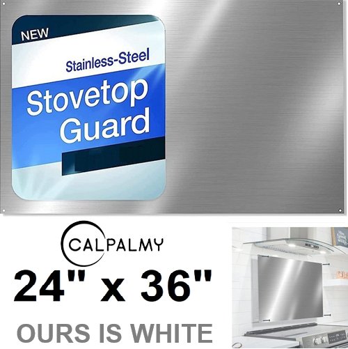 CALPALMY REVERSIBLE METAL BACKSPLASH PANEL SPLATTER GUARD FOR STOVE TOPS - compatible with 36" hood range - 24" X 36" - WHITE